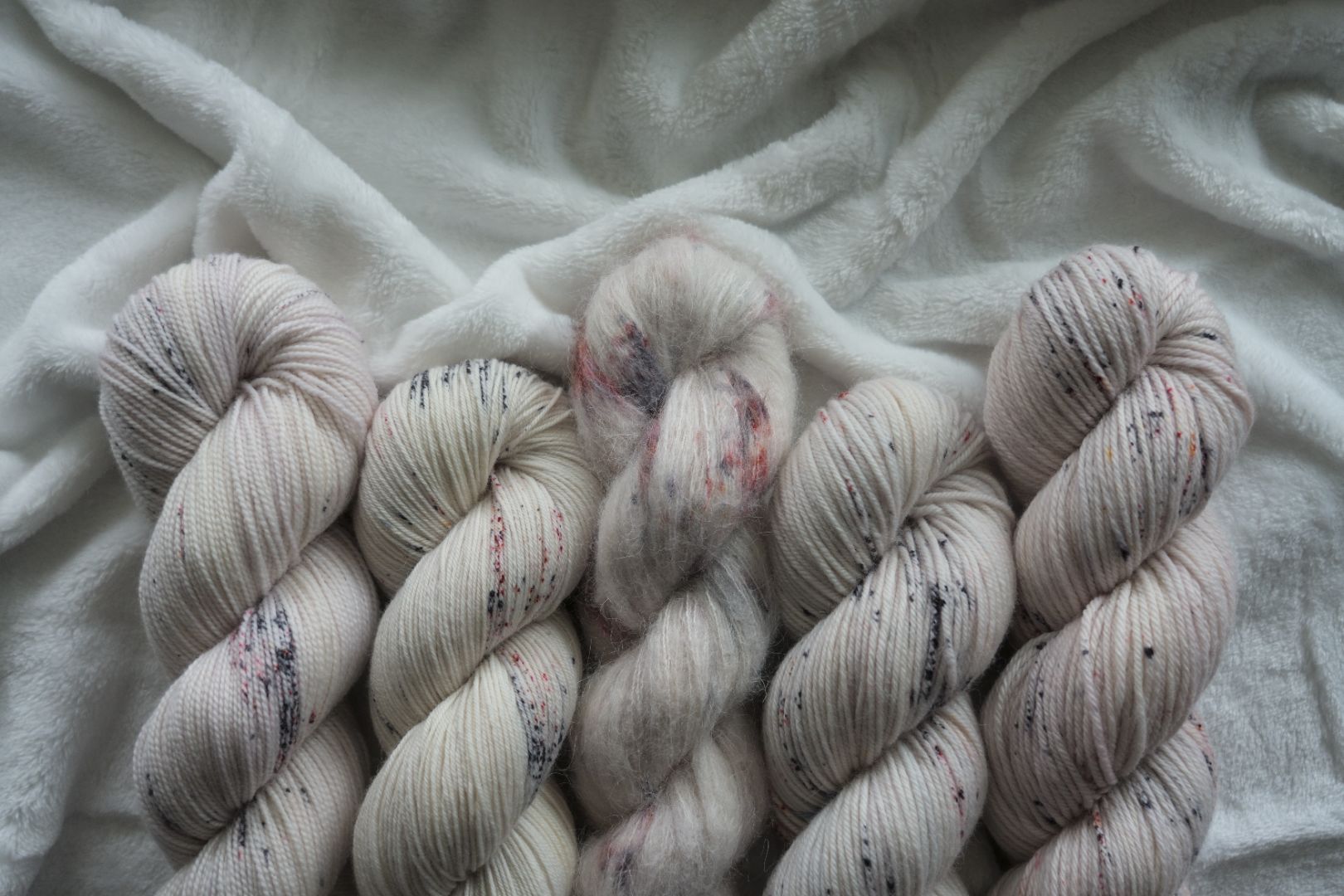 Our Darker Shade of Magic variegated colorway brings the different Londons together with a barely there creamy white base, and blood red & rich black speckles on top!