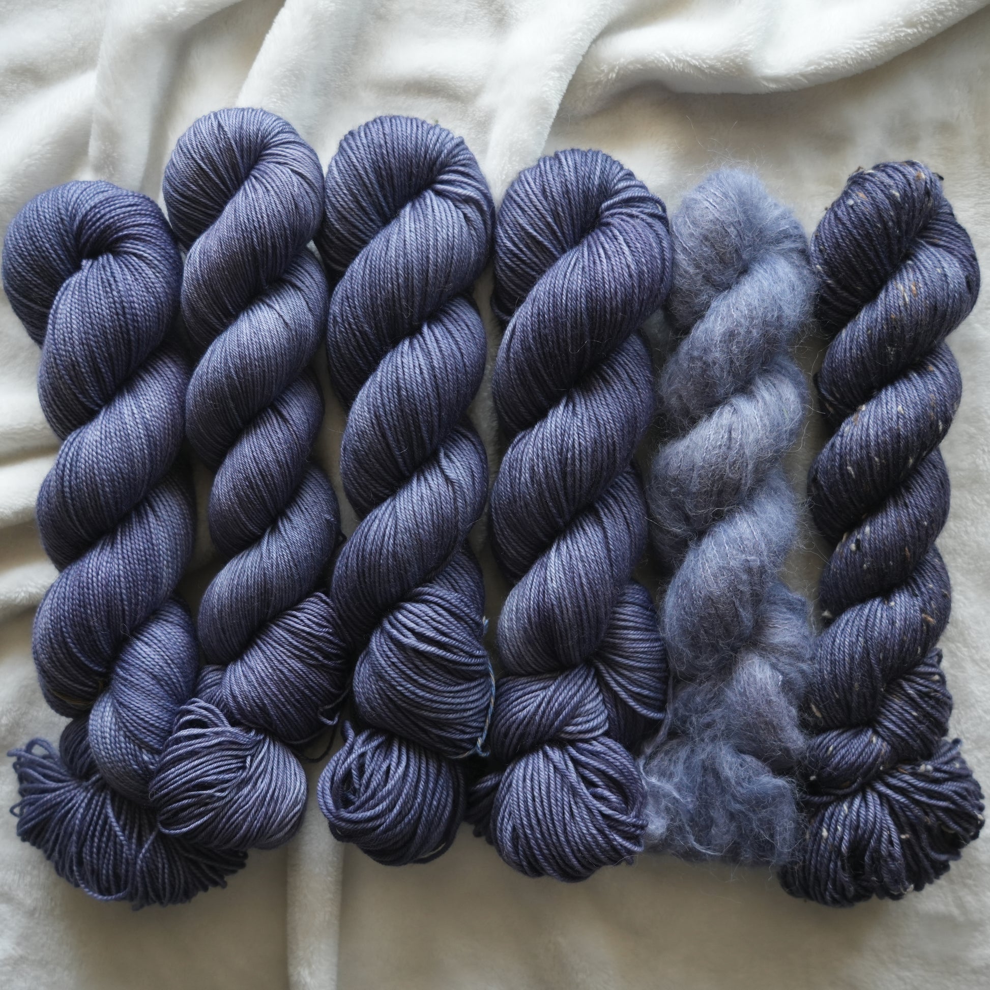 Frost Moon Tweed: 85% Superwash Merino, 15% Donegal Nep, 231 yards/100g